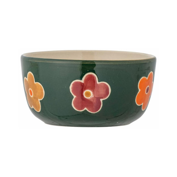 The Addy Bowl features a cozy design with large hand-painted flowers in warm shades, making each serving a little more special. The bowl has a beautiful dark green glaze, making it ideal for breakfast but also perfect for serving sweet and salty snacks. With its perfect size, it will undoubtedly become a hit at the dining table. Each bowl will be unique as every brushstroke adds a personal touch and creates slight variations in the design.
