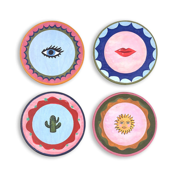 Say goodbye to boring coasters and hello to a vibrant set bursting with personality. The set of four coasters is cork-backed with a lacquer finish, each featuring a different hand-illustrated icon from the Eleanor Bowmer Electric Coast range – from lips to sunshine, eyes, and cacti. Protect your surfaces in style and add a ray of sunshine to your dining table all year round.