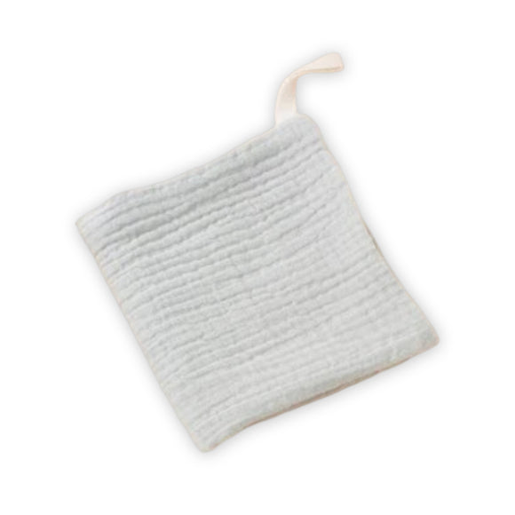 Gauze cotton muslin square. Double-layered, with a hanging rope. Perfect to use for baths, changing diapers, or as shoulder protection after the baby's meal.