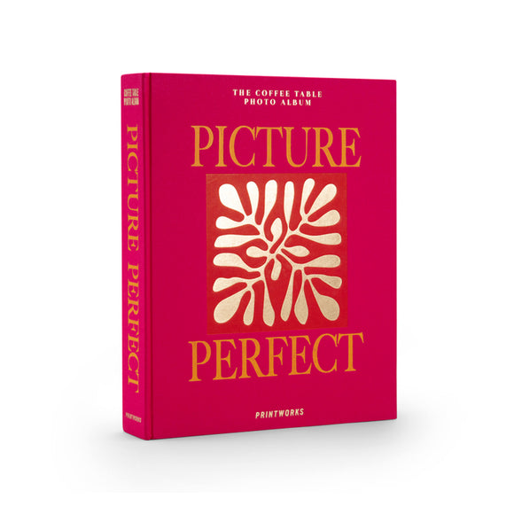 Discover the Picture Perfect Coffee Table Photo Album featuring an elegant, cerise cloth cover with orange text. Inside, you'll find 30 pages of high-quality black photo paper, allowing you to attach your photos easily using our stickers or photo corners, which are bought separately. It accommodates two 10x15 cm photographs on each page, with space for personal notes below.