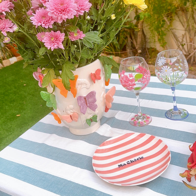 Say bonjour to the Pale Pink Ma Chérie Ceramic Plate – the sweetest serving dish to serve up snacks, cakes, and compliments. With soft white and rustic coral-pink stripes lined in perfect harmony, this round cutie gives off the vibes of a French café charm with a side of romance. And right in the centre is the delicate phrase ‘Ma Chérie’ – French for ‘my darling’ – written in the dreamiest font. C’est chic! Whether you’re dishing out croissants, stepping up your kitchenware game, or just want something pretty for your tableware, this plate brings all the charm. It’s playful, pretty, and guaranteed to make everything feel a bit more special.